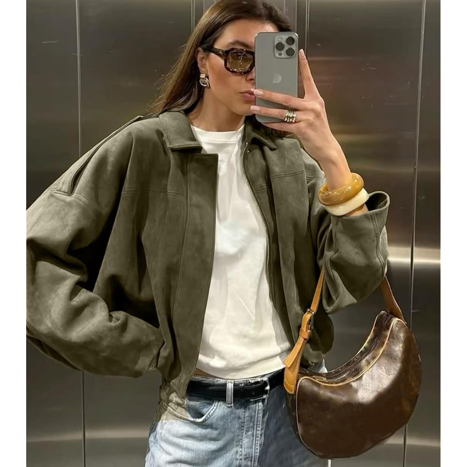 Dames Faux Suede bomber jas Casual Lapel Pilot met warme, lichte of waterafstotende materialen.