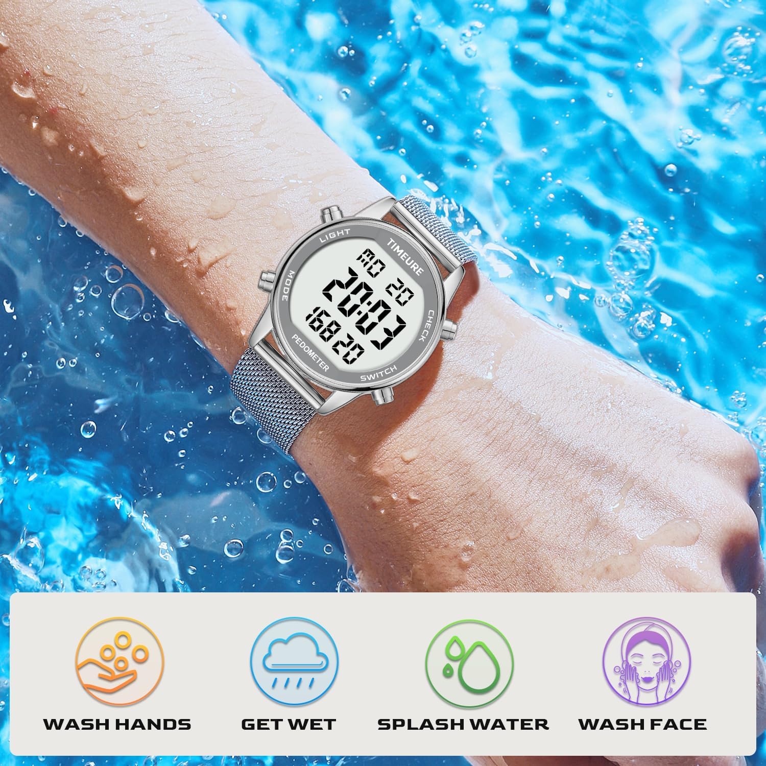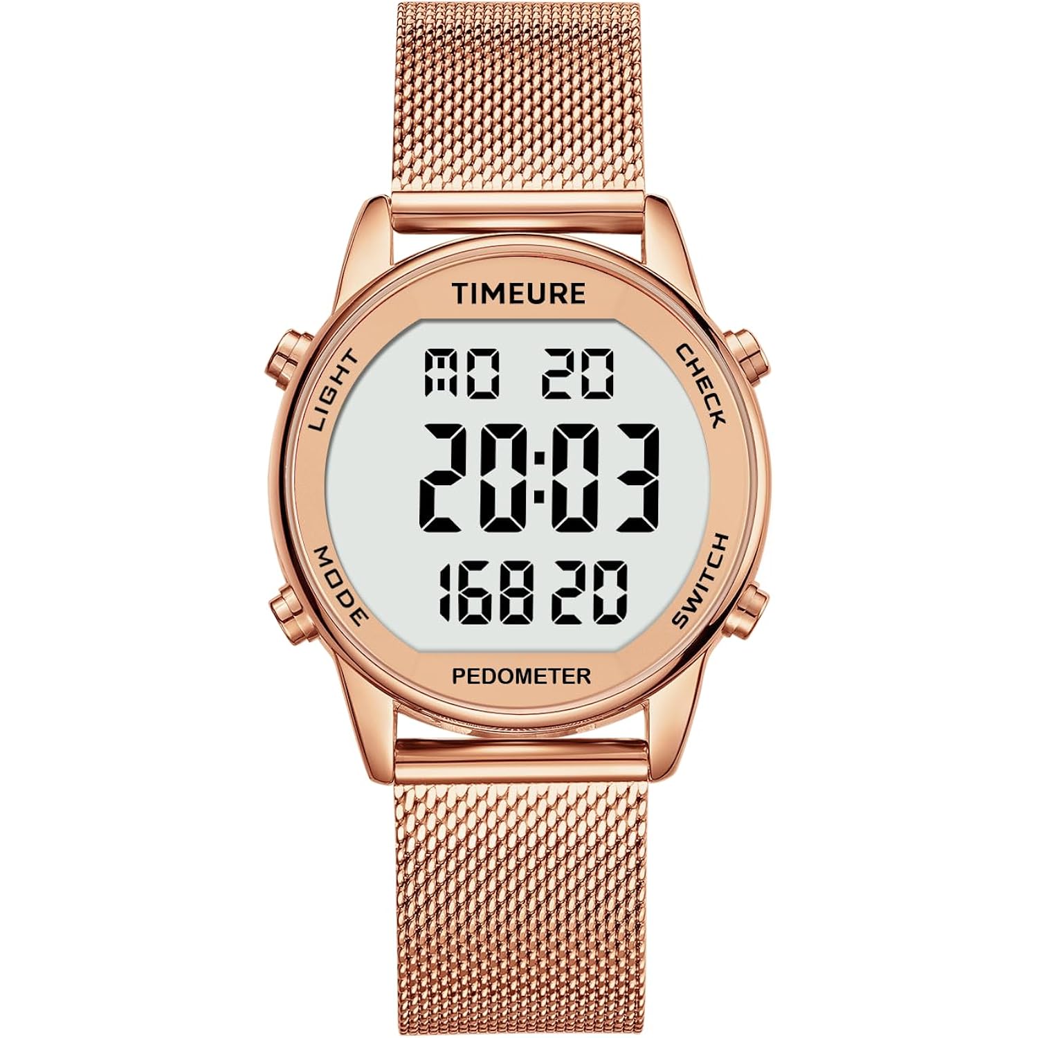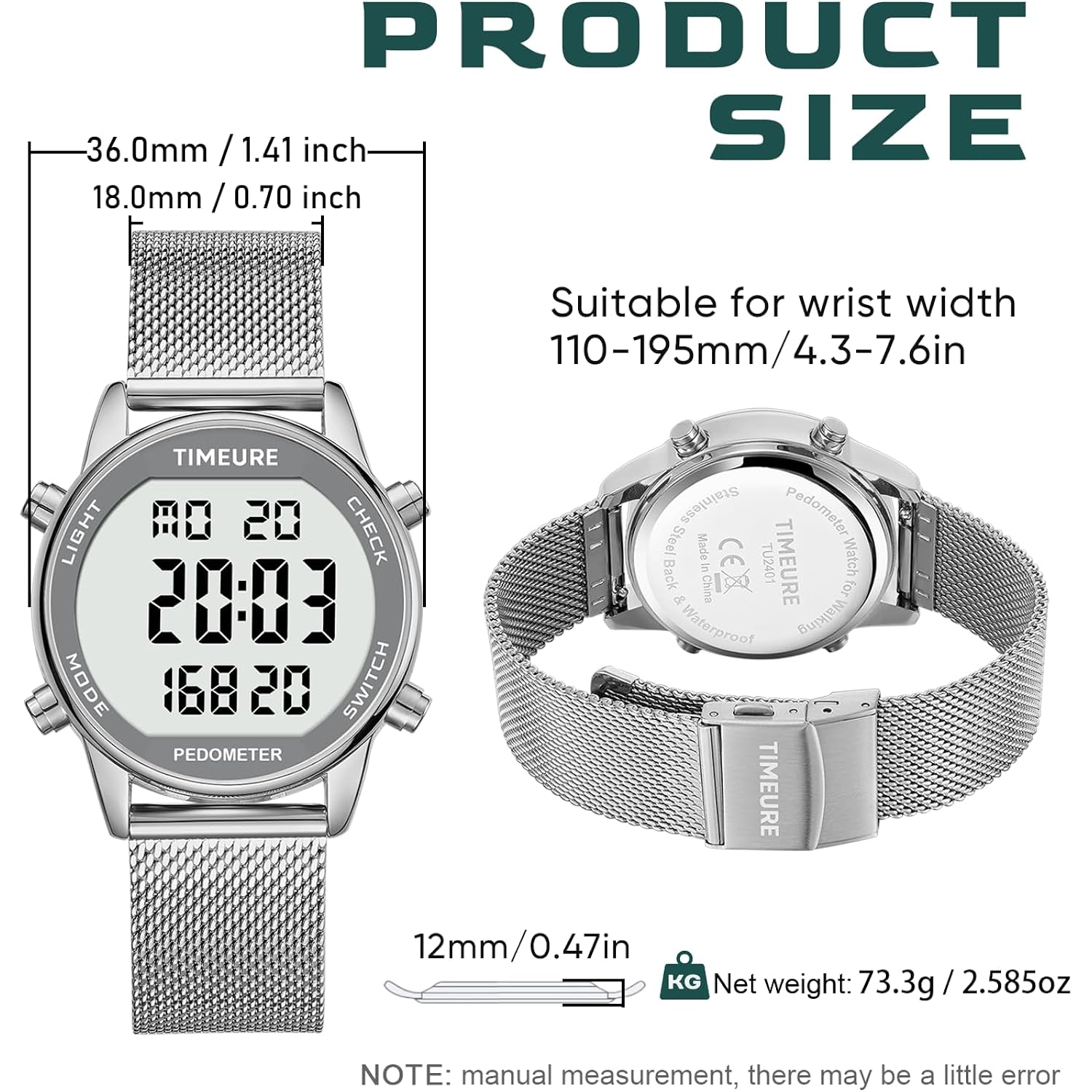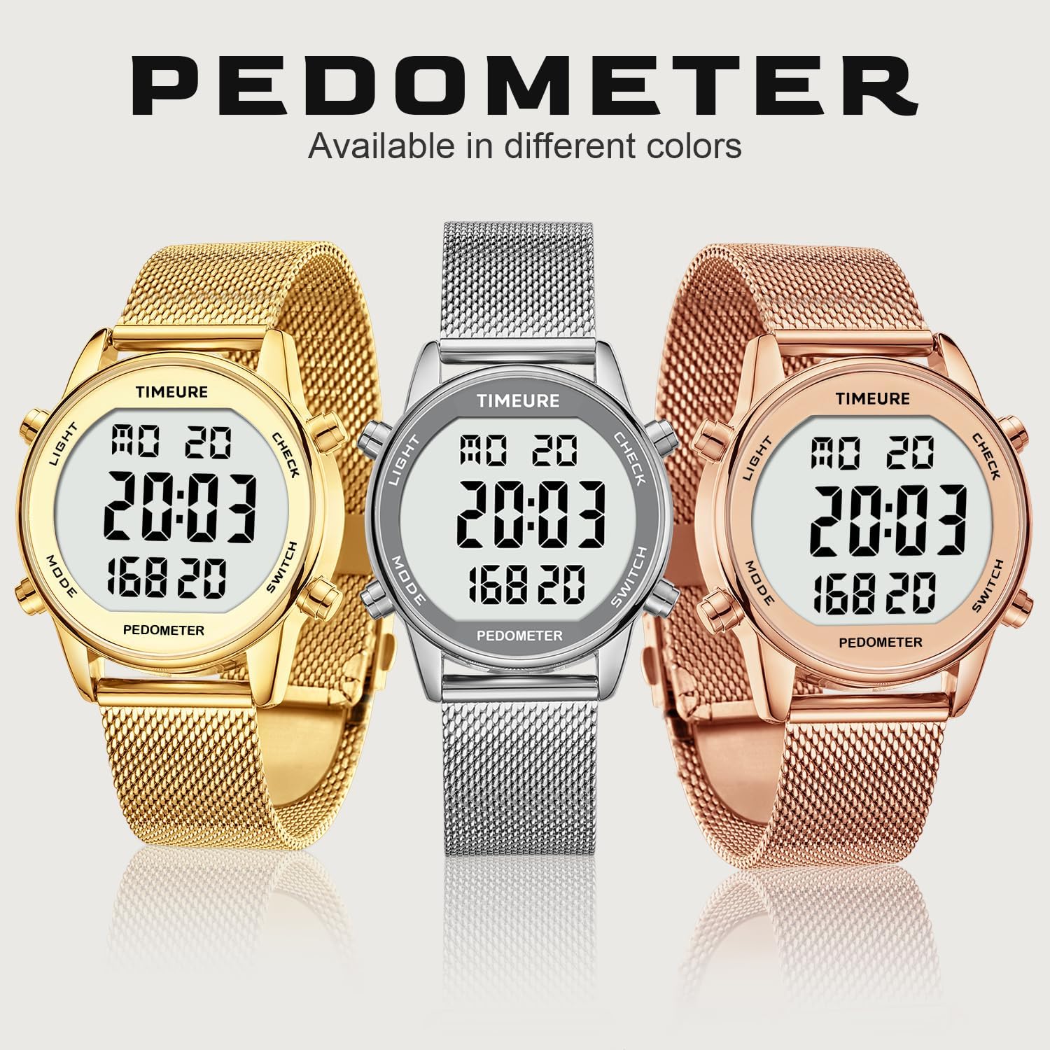 Dames Step Counter Pedometer horloge with roestvrij staal