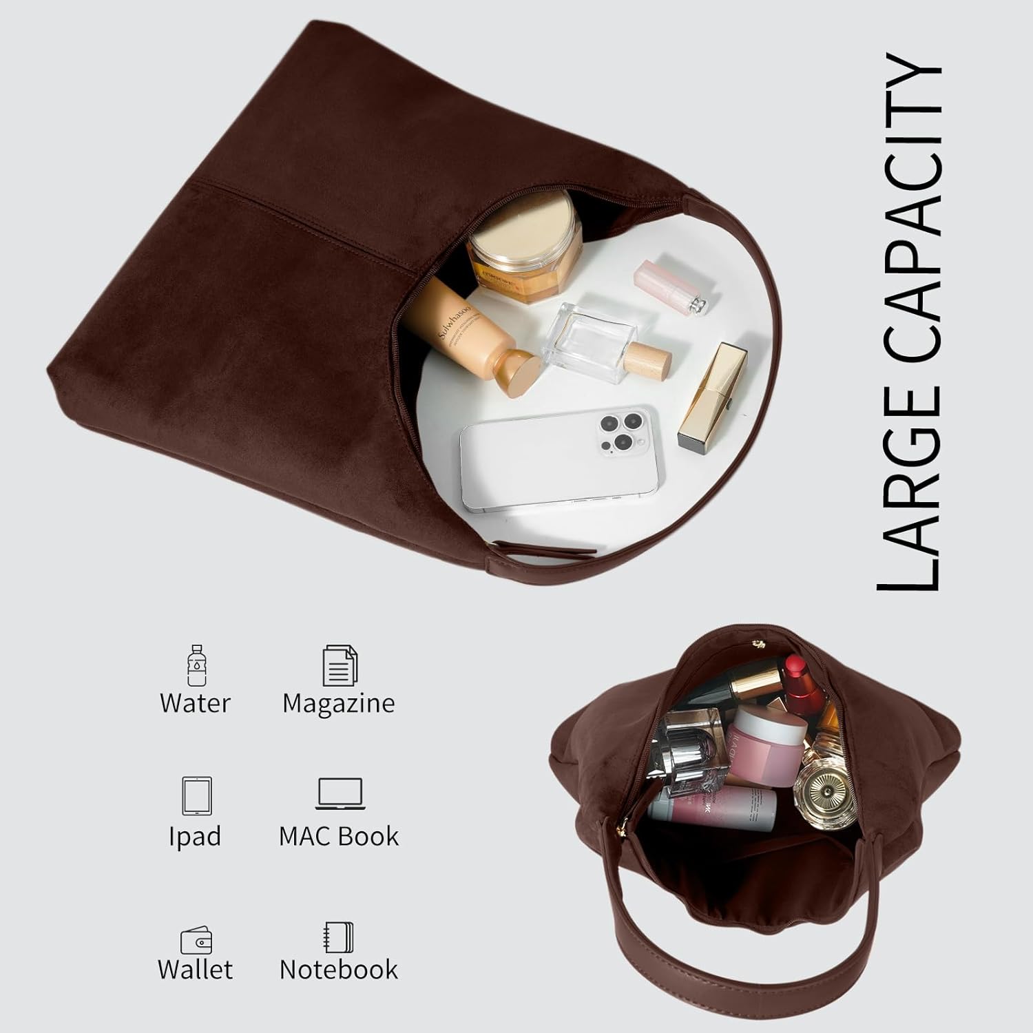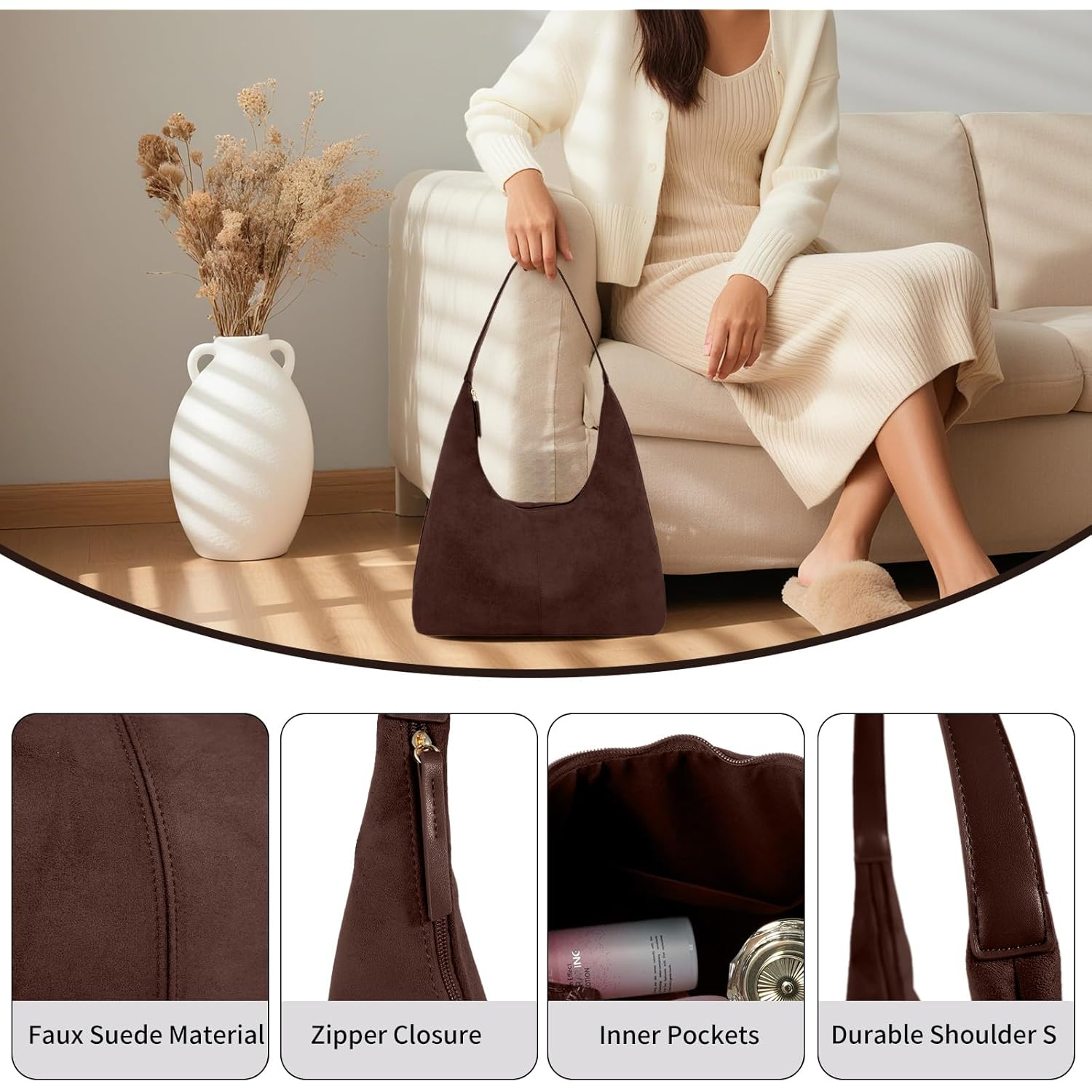 Dames’s Trendy suède tote Bag schoudertas For Dames met slimme vakken en hoogwaardige afwerking.
