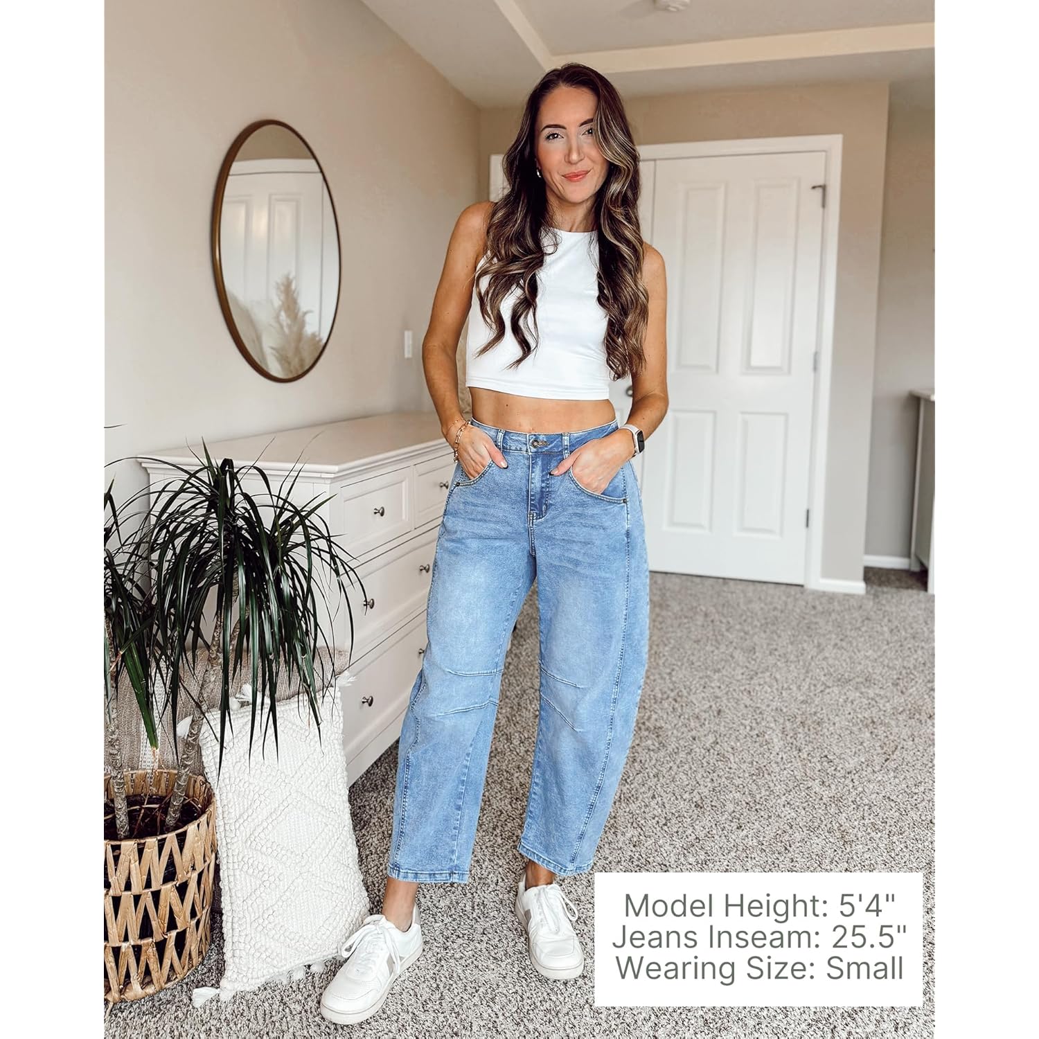 GRAPENT Barrel jeans for Dames Trendy high-waist wide met comfortabele stretch en flatterende pasvorm.