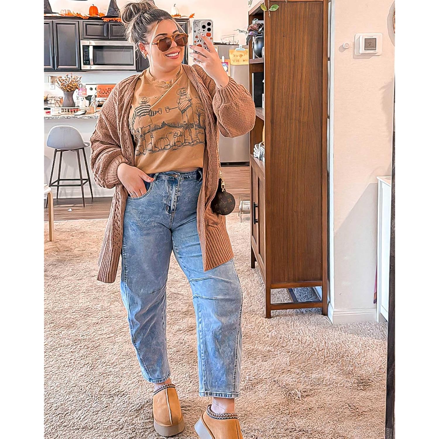 GRAPENT Barrel jeans for Dames Trendy high-waist wide