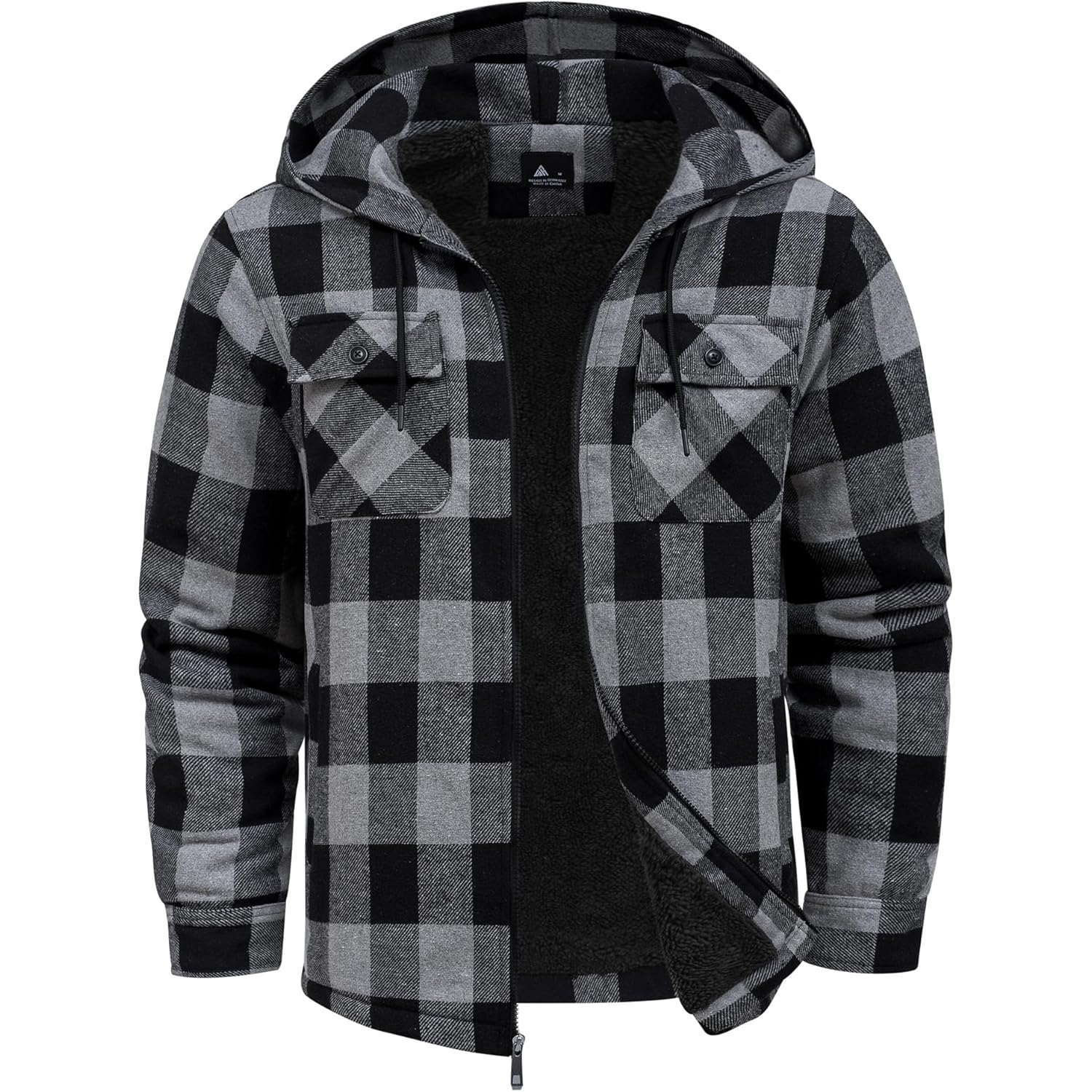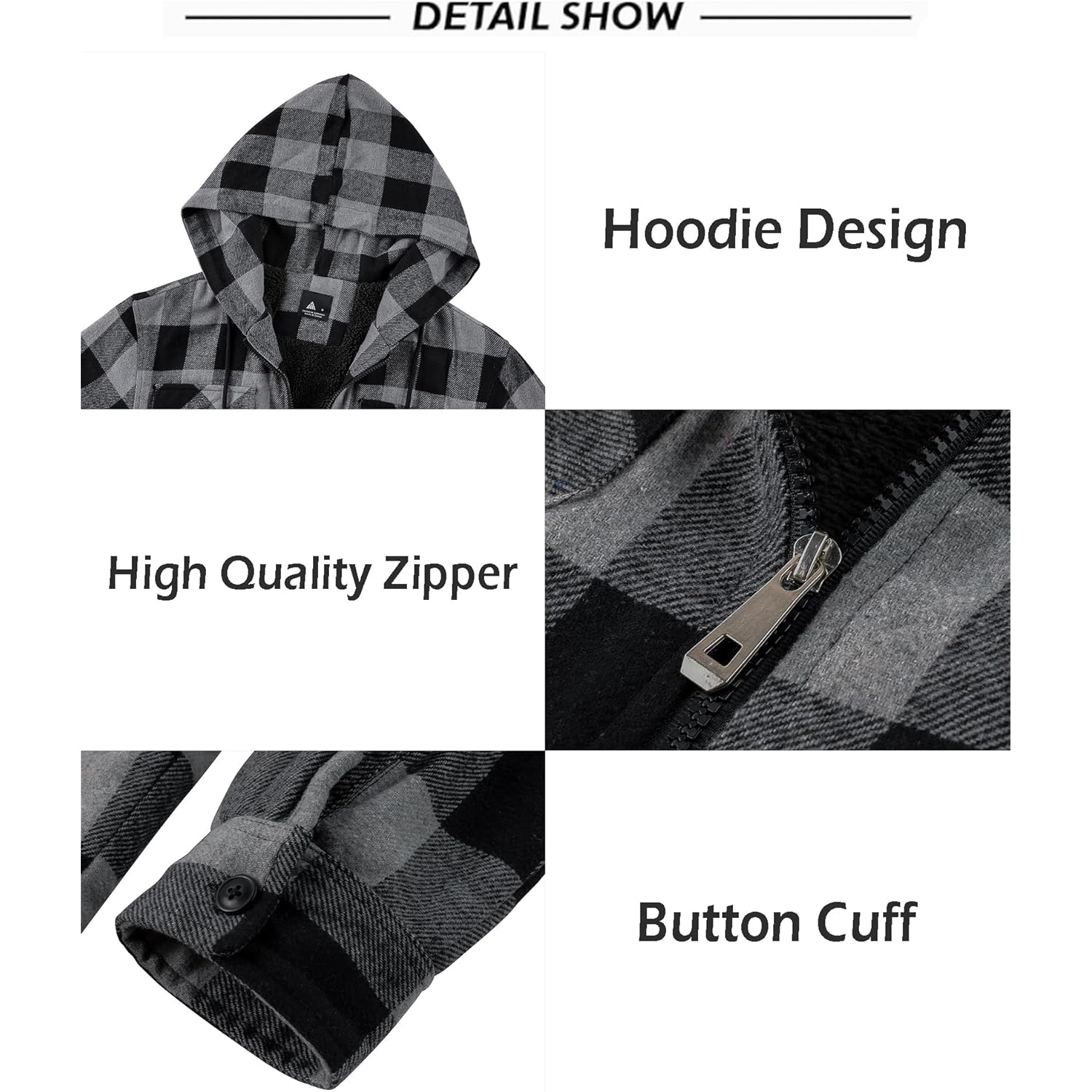 Heren hoodie Flannel Hooded Jacket Sherpa Lined zip Hoodies for Heren Plaid