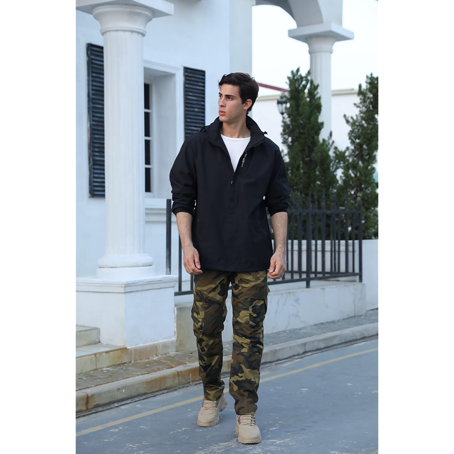 Heren lichtgewicht waterdicht regen jas,Shell capuchon Outdoor regenjas met nette afwerking en comfortabele pasvorm.