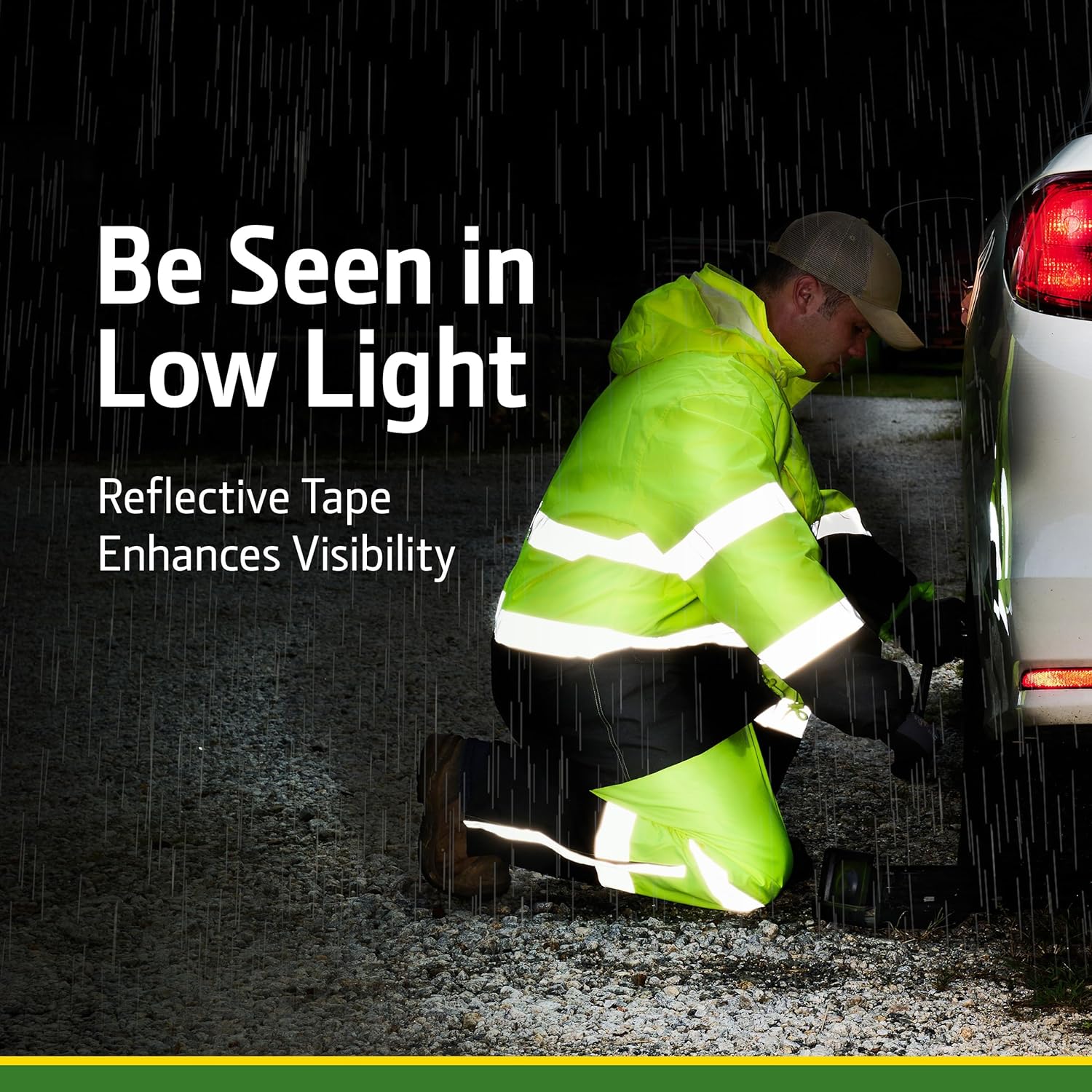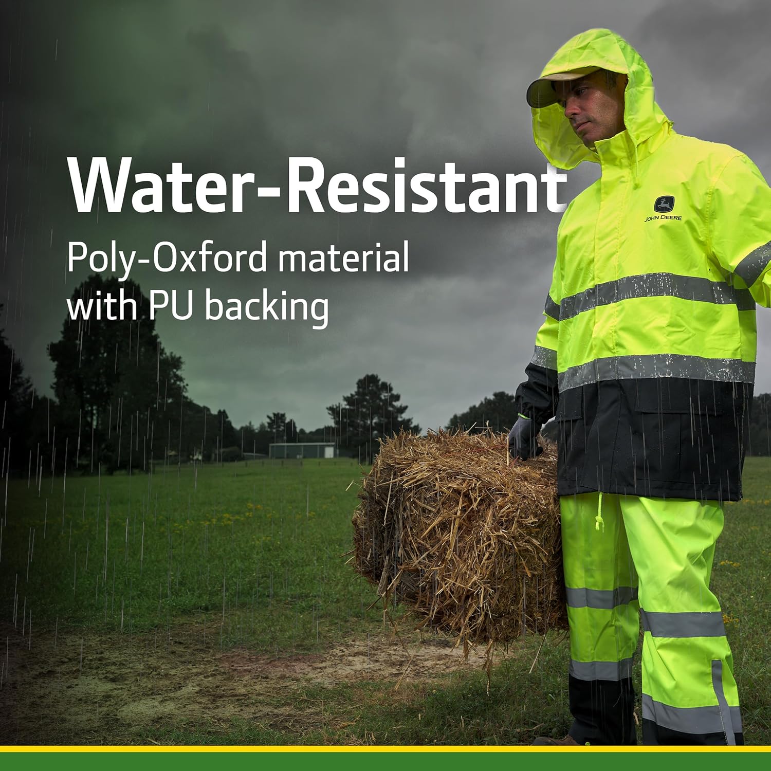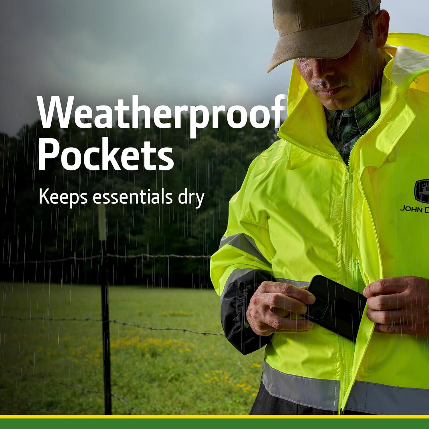 John Deere Hi-Visibility regen Suit, ANSI Class 3, met nette afwerking en comfortabele pasvorm.