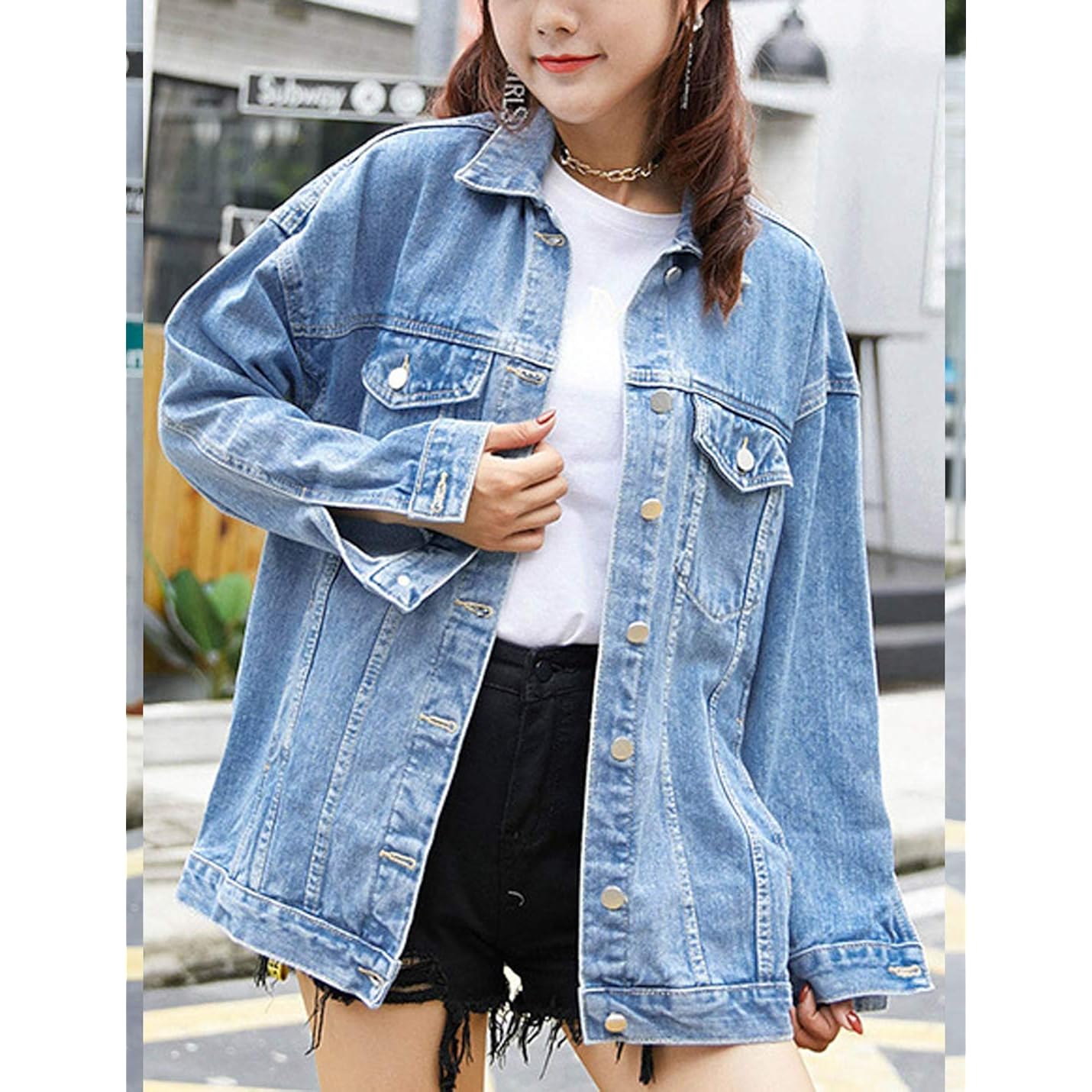 Omoone Dames oversized Mid lang Denim jas Jean met warme, lichte of waterafstotende materialen.