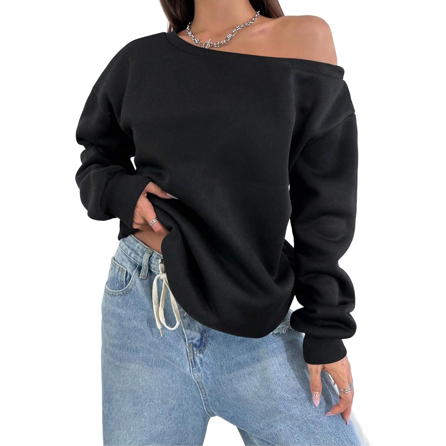 Remidoo Dames Off Shoulder sweatshirt Drop Shoulder oversized met zachte stoffen en comfortabele pasvorm.